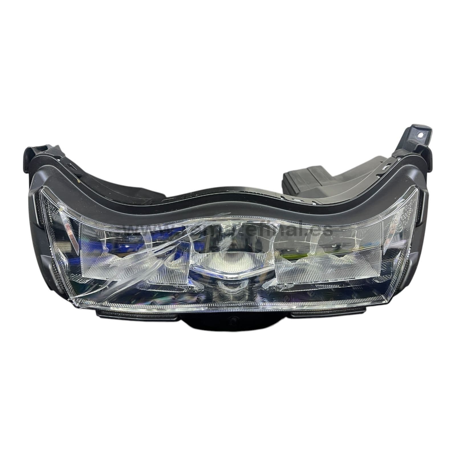 Faro delantero, Óptica de ocasion con desperfecto en el cristal y 1 soporte roto tal y como se aprecia en las imagenes, para moto scooter Honda SH 125 y 150 K0R modelo años 2021 2022 2023 2024 y 2025. Honda SH 350 K1W años 2021 2022 2023 2024 y 2025 con Referencia: OEM 33100-K0R-V01.Productos relacionados