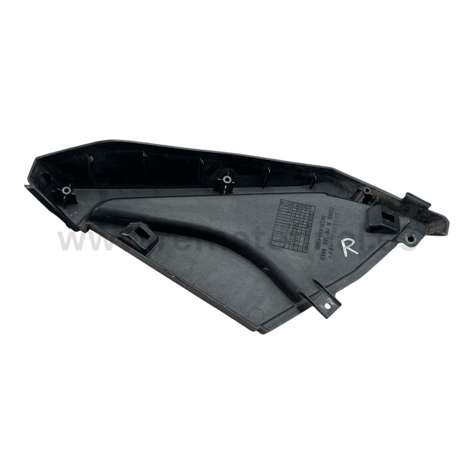 Protector derecho contraescudo, en color negro, en buen estado, con Referencia OEM 64530-K40- para moto scooter Honda Forza 125 K40 modelo años 2015 2016 2017 y 2018.